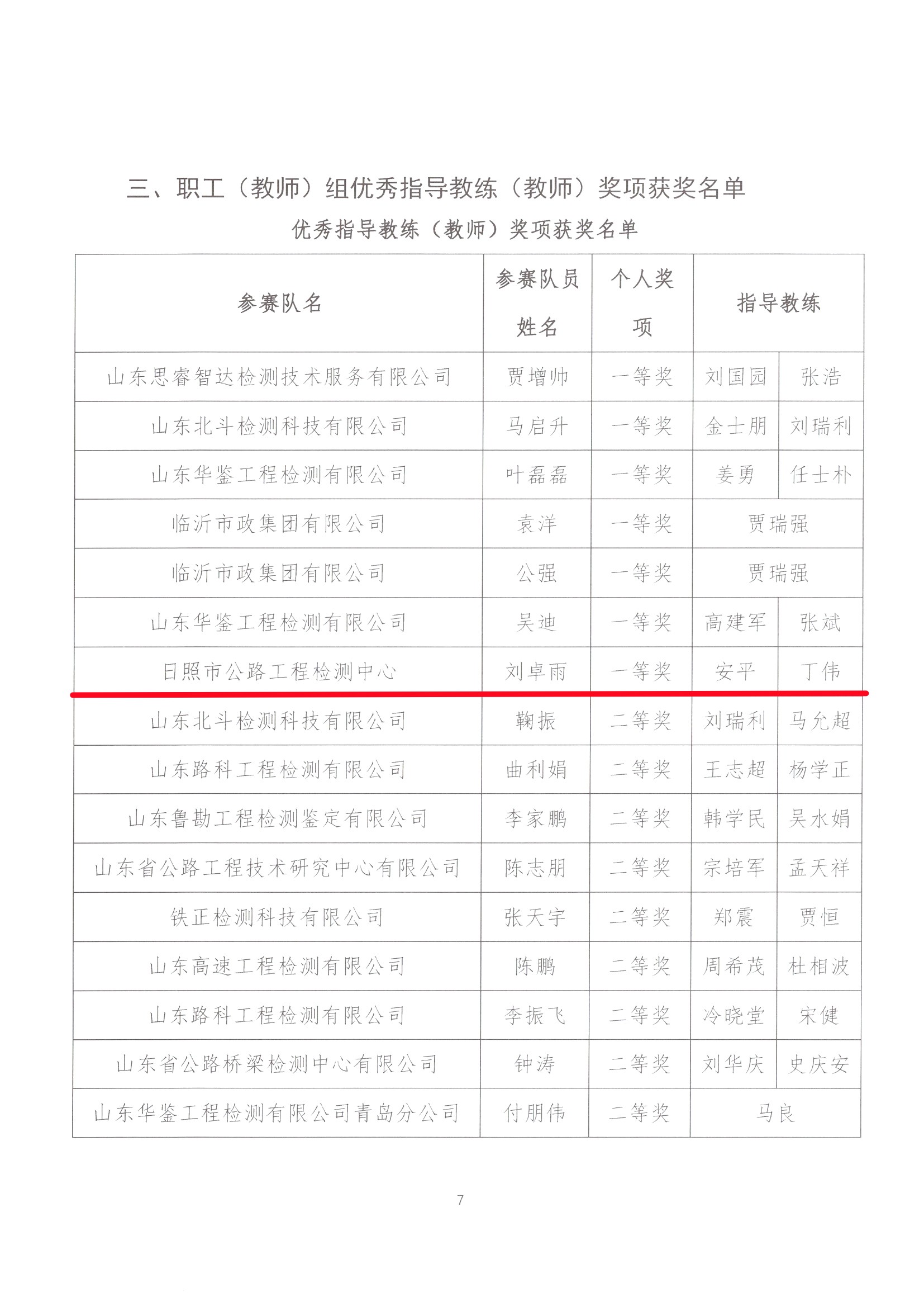 近日,山東省“技能興魯”職業(yè)技能大賽——2022年建材建工檢測(cè)行業(yè)職業(yè)技能競(jìng)賽發(fā)布獲獎(jiǎng)名單。經(jīng)過激烈角逐,集團(tuán)建設(shè)公司榮獲團(tuán)體二等獎(jiǎng),劉卓雨獲個(gè)人一等獎(jiǎng),丁海洋獲個(gè)人三等獎(jiǎng),丁偉、安平獲優(yōu)秀指導(dǎo)教練。