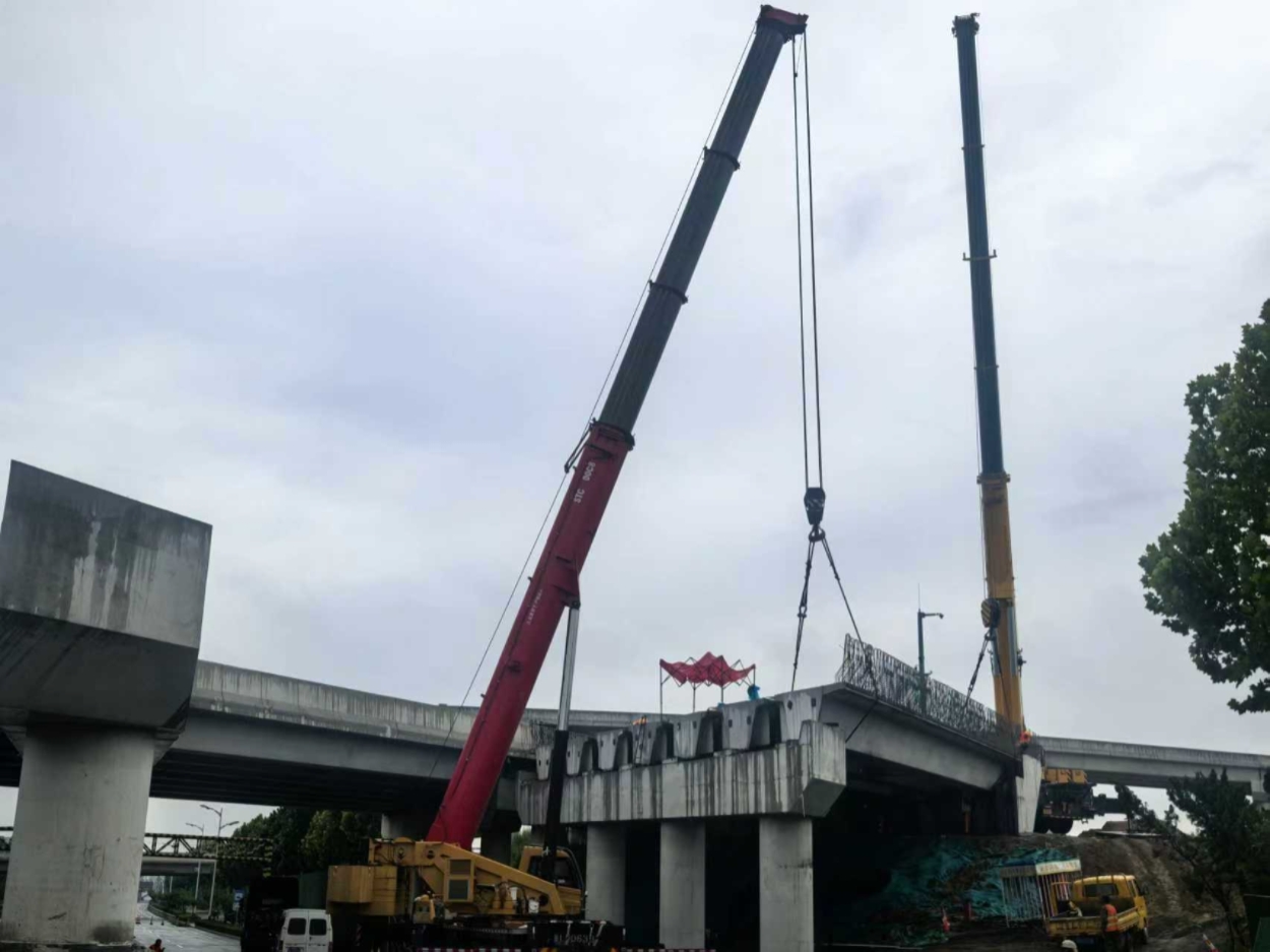 7月1日,隨著最后一片預(yù)制箱梁精準(zhǔn)“落子”,沈海高速改擴(kuò)建工程圓滿完成跨S222省道跨線橋箱梁架設(shè)任務(wù),標(biāo)志著橋梁上部結(jié)構(gòu)施工取得階段性進(jìn)展,為后續(xù)橋面鋪裝施工奠定了堅(jiān)實(shí)基礎(chǔ)。